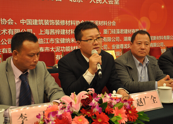 中國(guó)硅藻泥材料行業(yè)協(xié)會(huì)副會(huì)長(zhǎng),歐亞綠邦(北京)科技有限公司暨蒙太奇硅藻泥負(fù)責(zé)人趙廣全重要發(fā)言