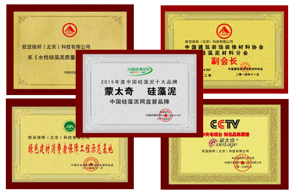 正式經(jīng)過多年來不懈努力,致使蒙太奇品牌獲得多個(gè)榮譽(yù)資質(zhì),如:硅藻泥行業(yè)十大品牌、硅藻泥材料分會(huì)副會(huì)長單位、《水性硅藻泥質(zhì)量標(biāo)準(zhǔn)》參編單位、綠色建材消費(fèi)者保障工程示范基地、CCTV展播品牌、《硅藻泥裝飾材料應(yīng)用技術(shù)規(guī)程》編制單位等。