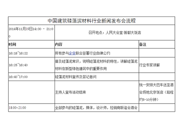 ? ? 在住房和城鄉(xiāng)建設(shè)部、環(huán)境保護(hù)部的指導(dǎo)下,中國(guó)建筑裝飾裝修材料協(xié)會(huì)硅藻泥材料分會(huì)定于2014年11月19日14:30到21點(diǎn)在人民大會(huì)堂召開(kāi)“中國(guó)建筑硅藻泥材料行業(yè)新聞發(fā)布會(huì)”。